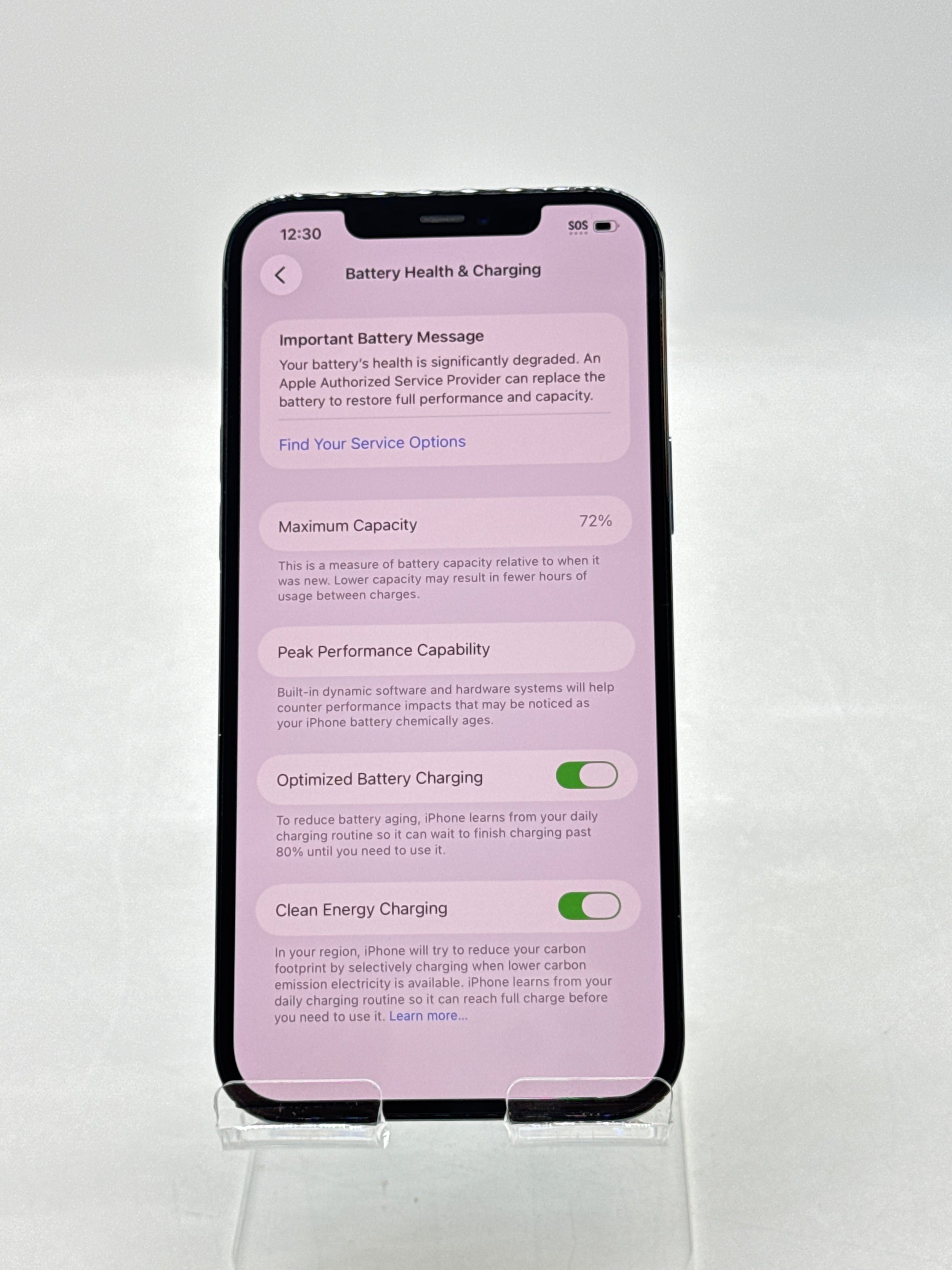 | Battery Health | 72% (Service Battery) |