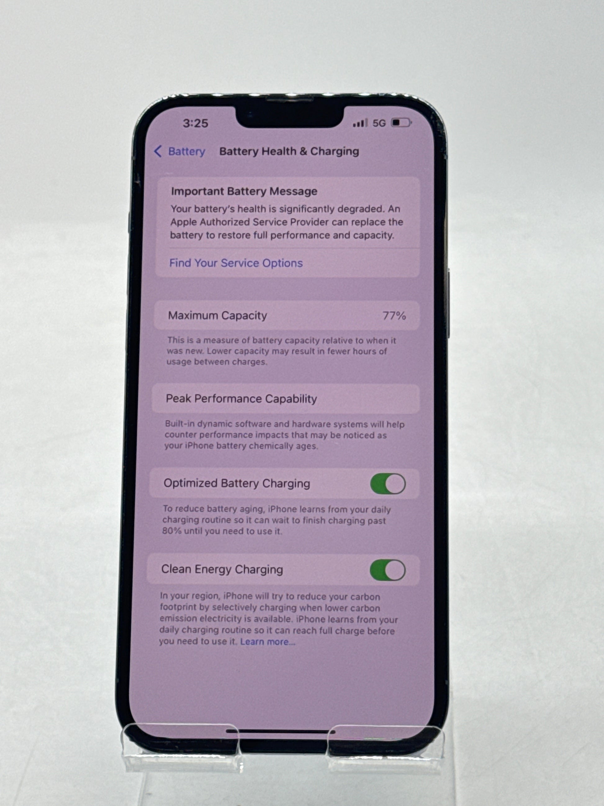 | Battery Health | Service Battery 77% |