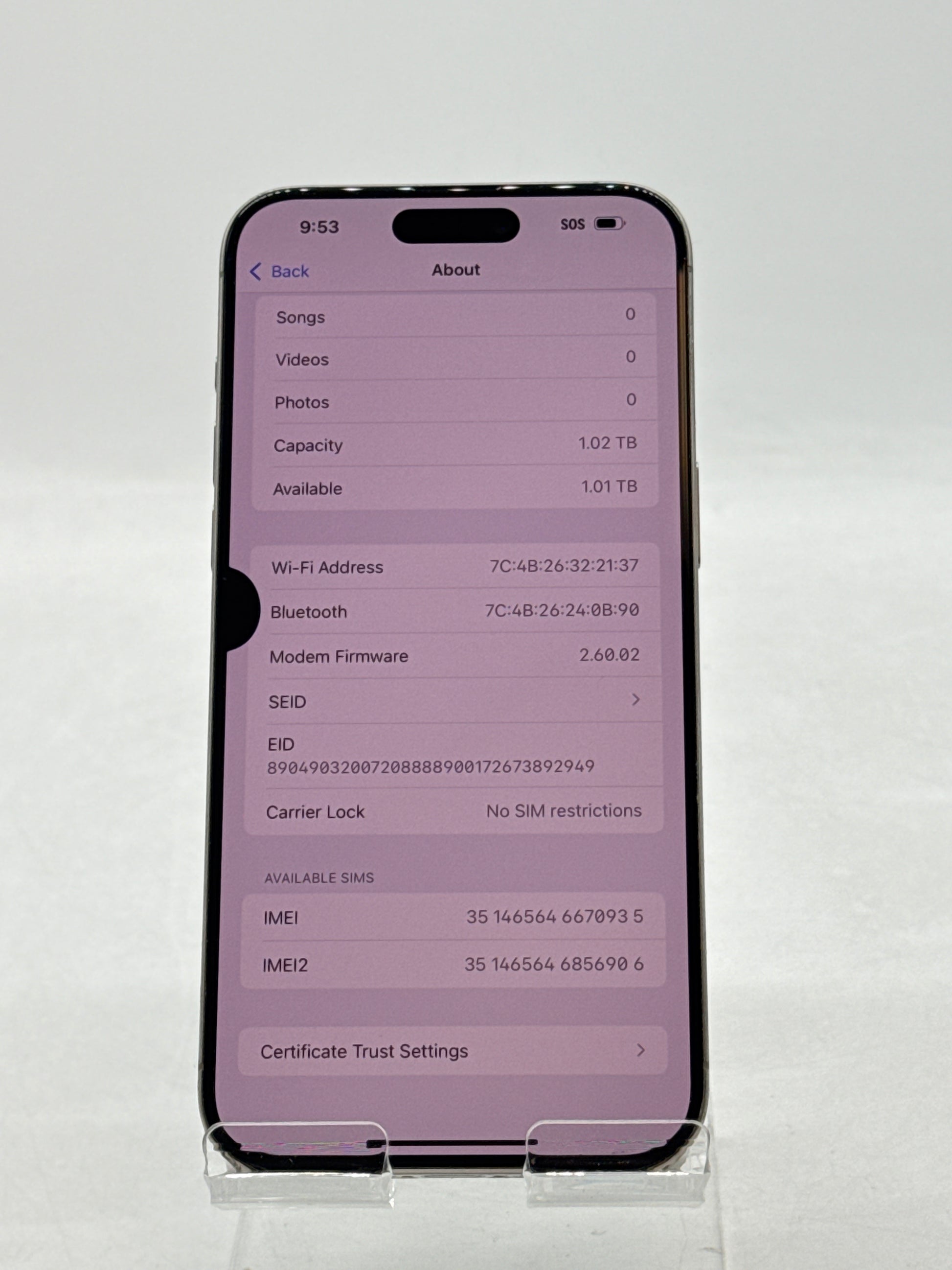 | Model | Apple iPhone 15 Pro Max |