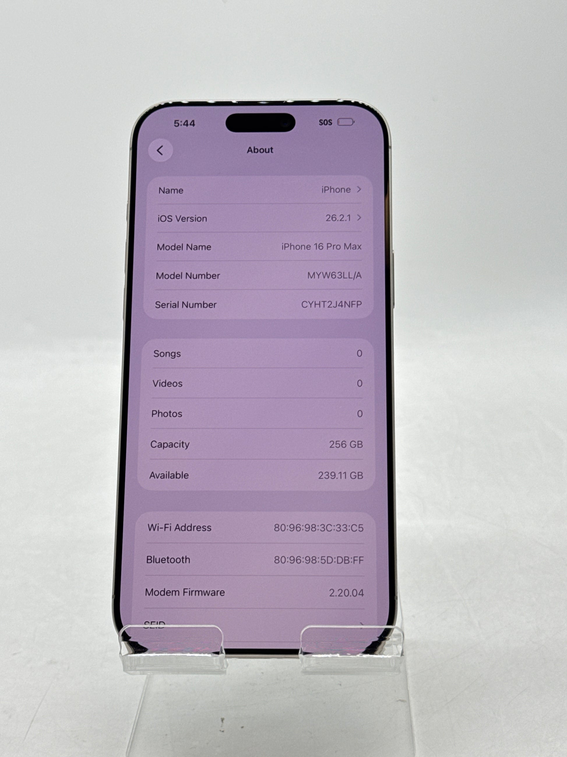 | Model | Apple iPhone 16 Pro Max |