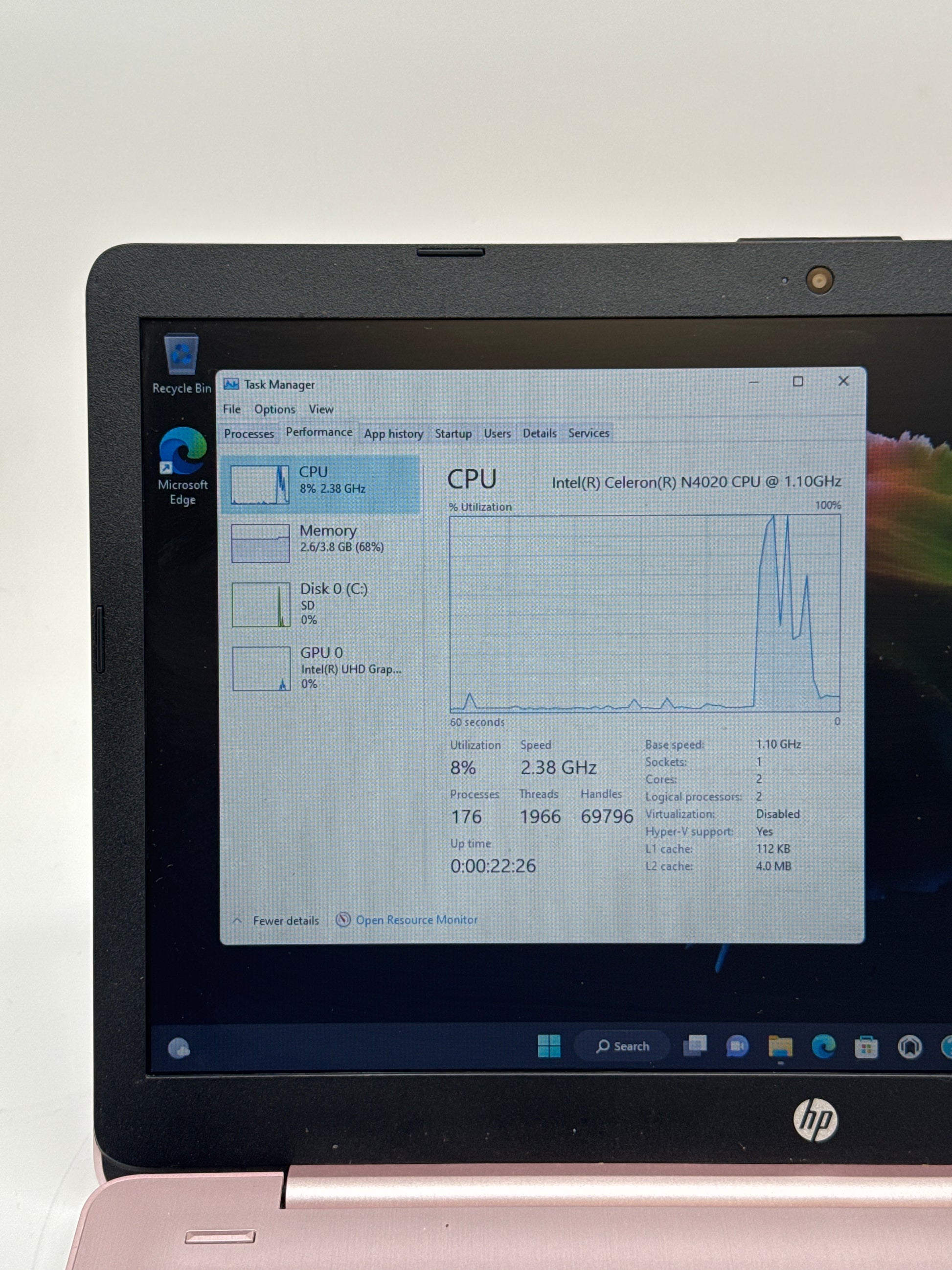 | Processor | Intel Celeron N4020 @ 1.10GHz |