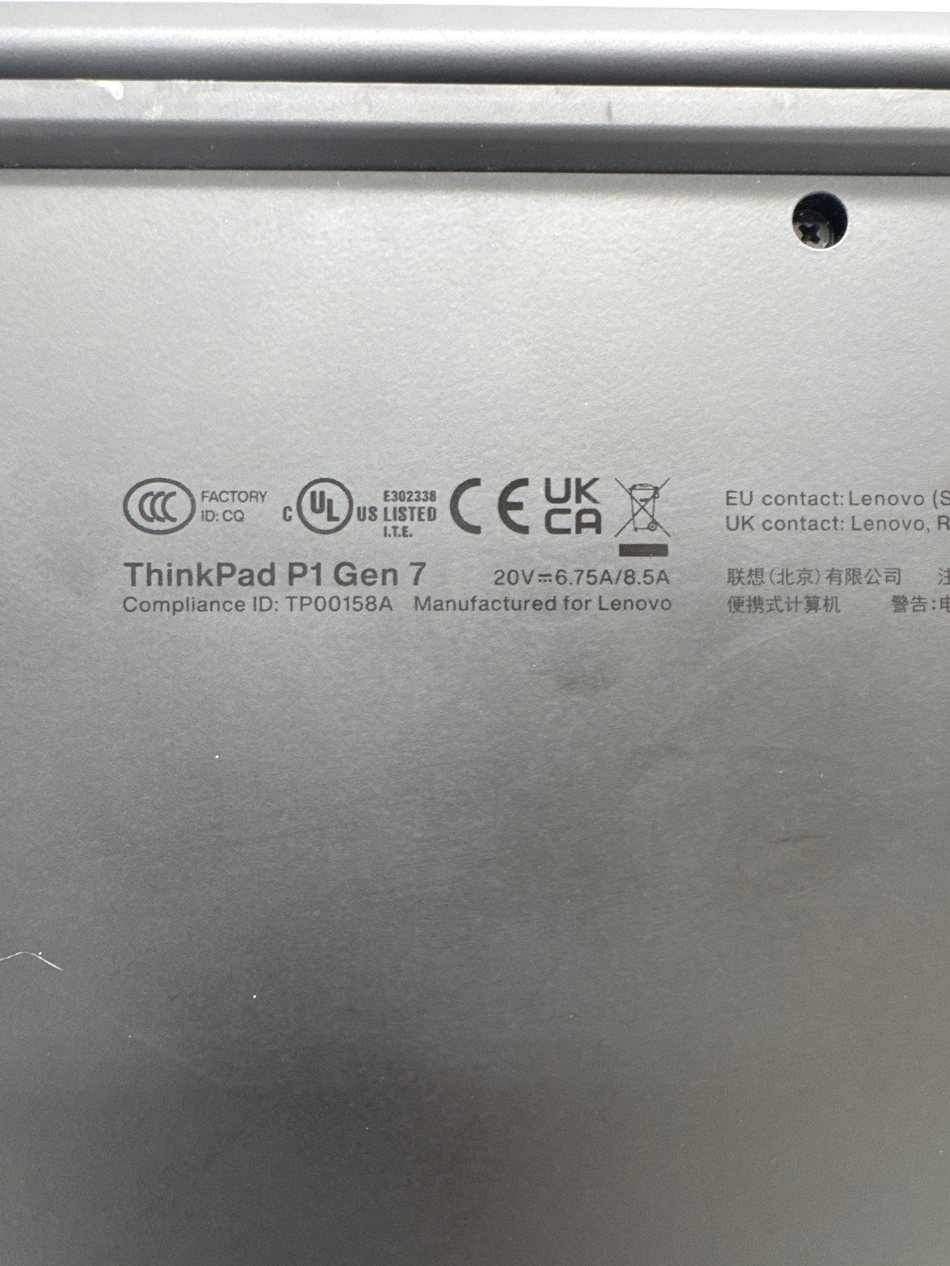 | Model | Lenovo ThinkPad P1 Gen 7 |
