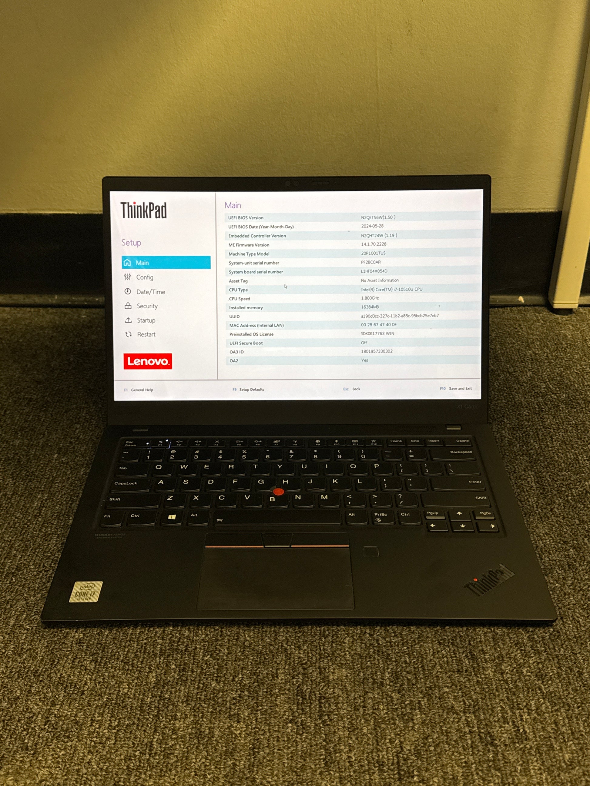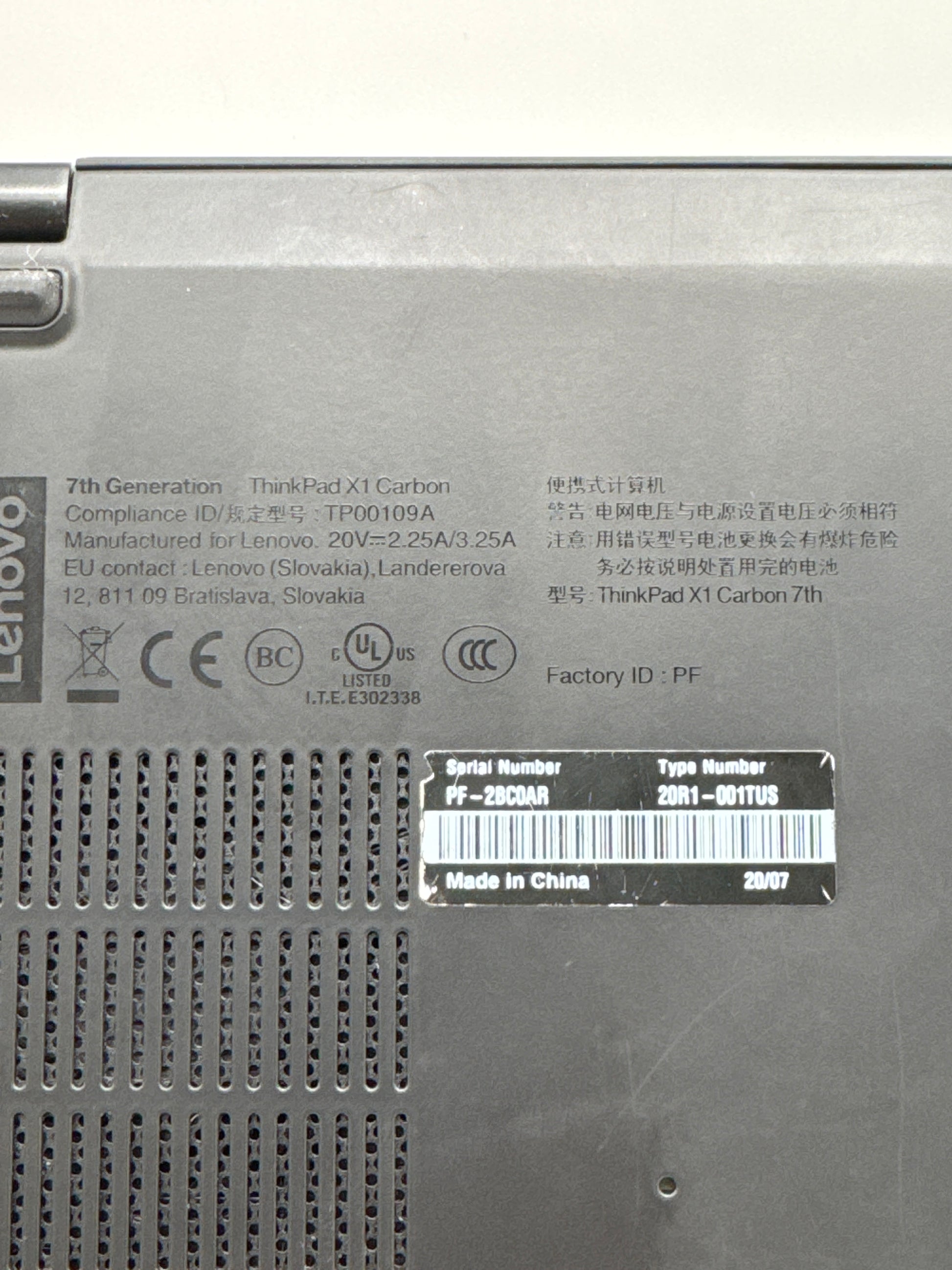 | Model | Lenovo ThinkPad X1 Carbon 7th Gen |