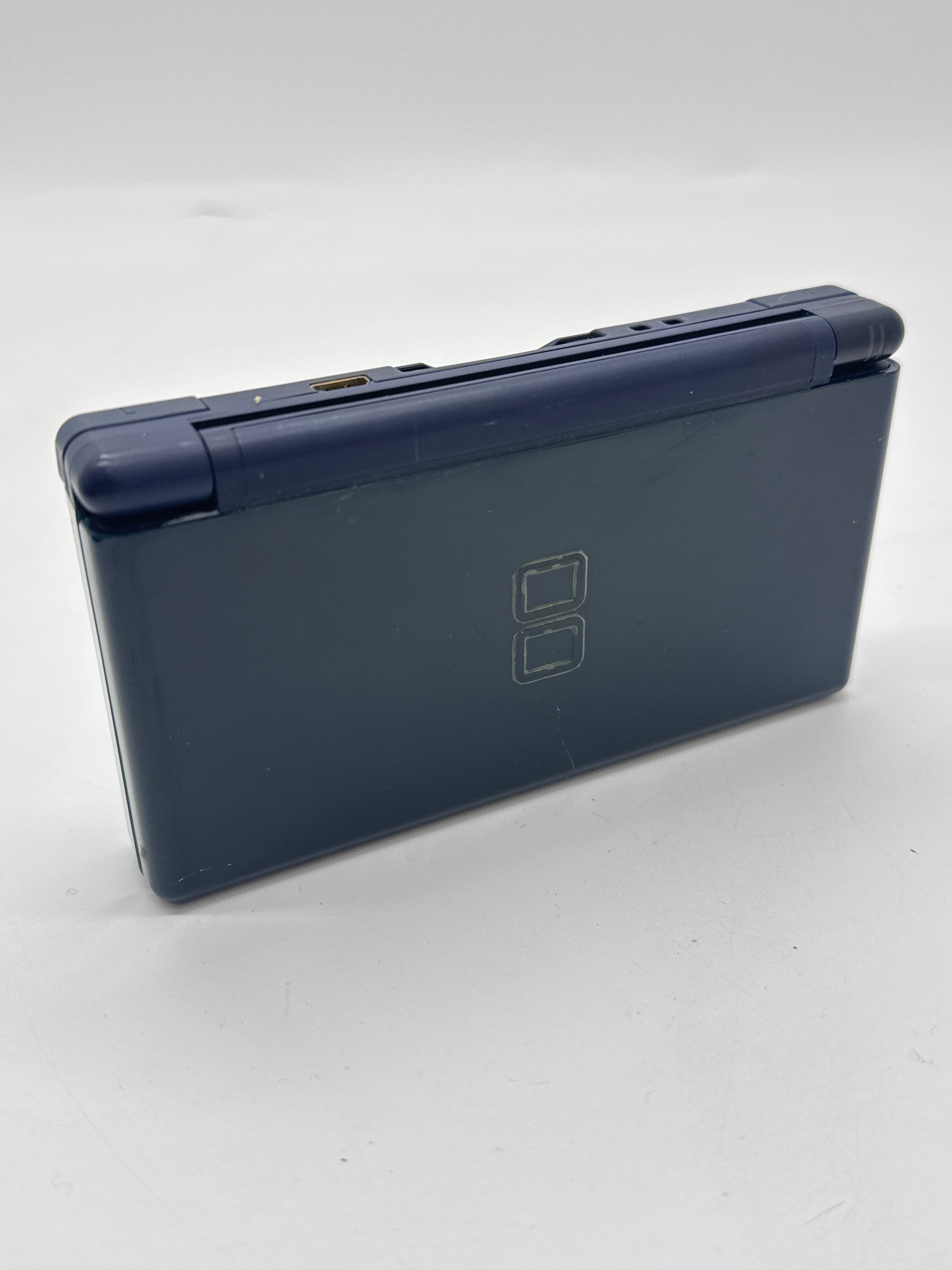 This Nintendo DS Lite (model USG-001) in Blue has been fully tested and is in good working condition. The shell has no cracks but shows normal wear, including some imperfections and light dirt in the nooks and crannies. Screens are intact with normal light wear.
