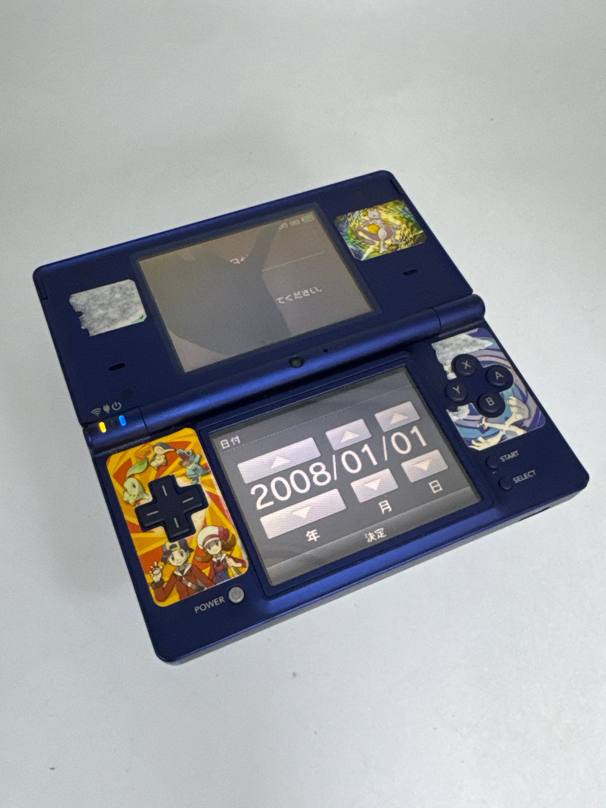 Nintendo DSi TWL-001(JPN) Metallic Blue Console #113 Stickers & Cracked Top Screen AS IS