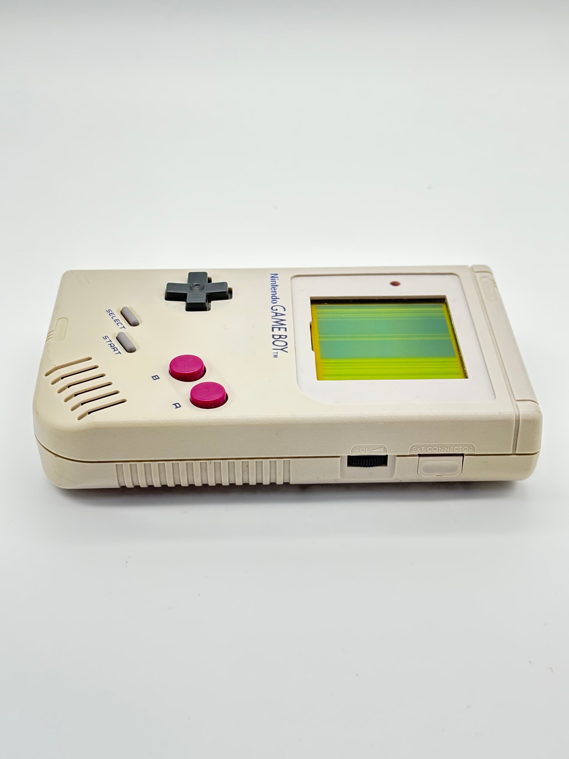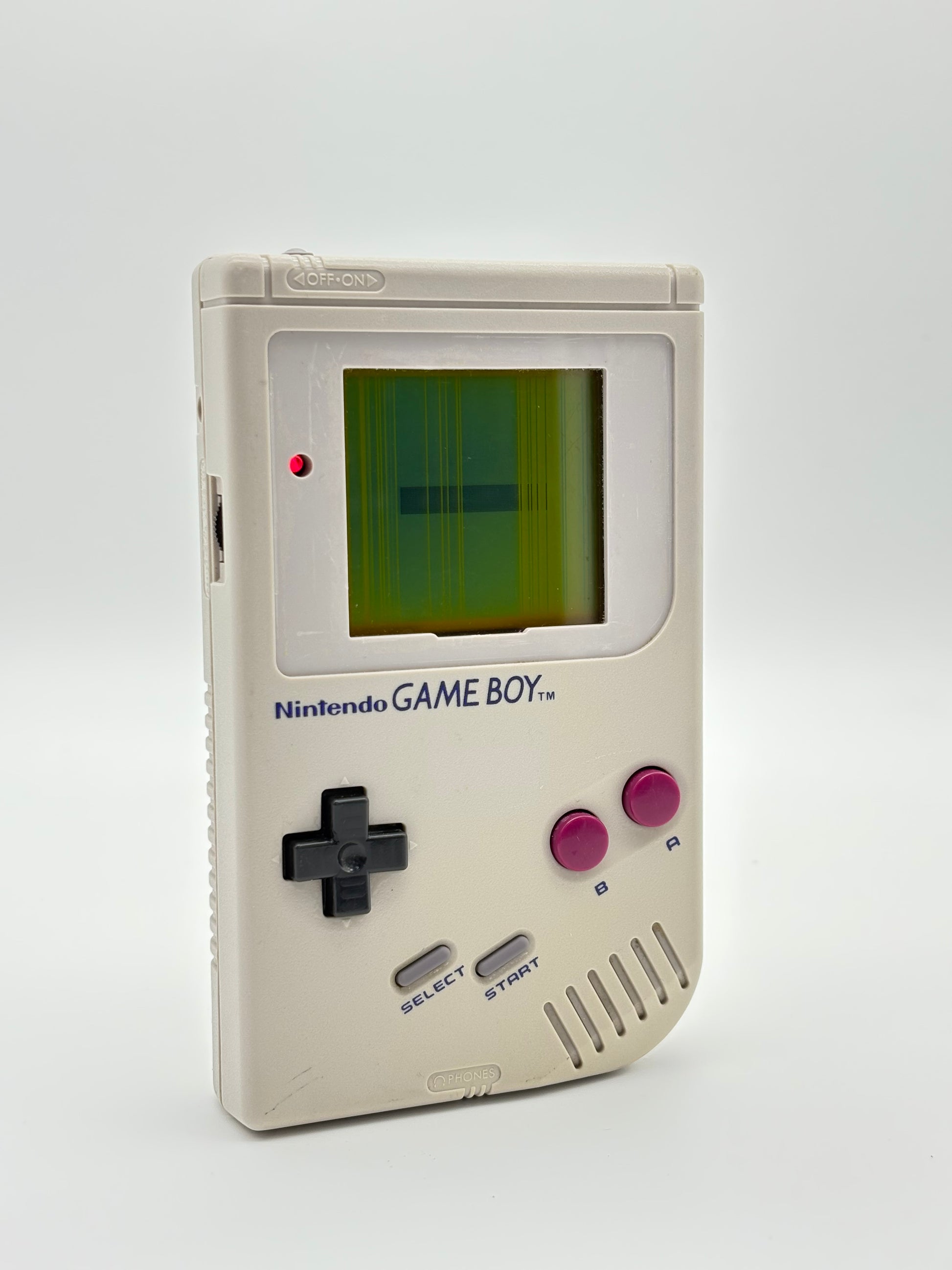 Original Game Boy console sold AS IS with known display issues, missing screen frame. The screen exhibits multiple lines and flickering. This unit is best suited for parts, screen replacement or restoration projects. Perfect for hobbyists.