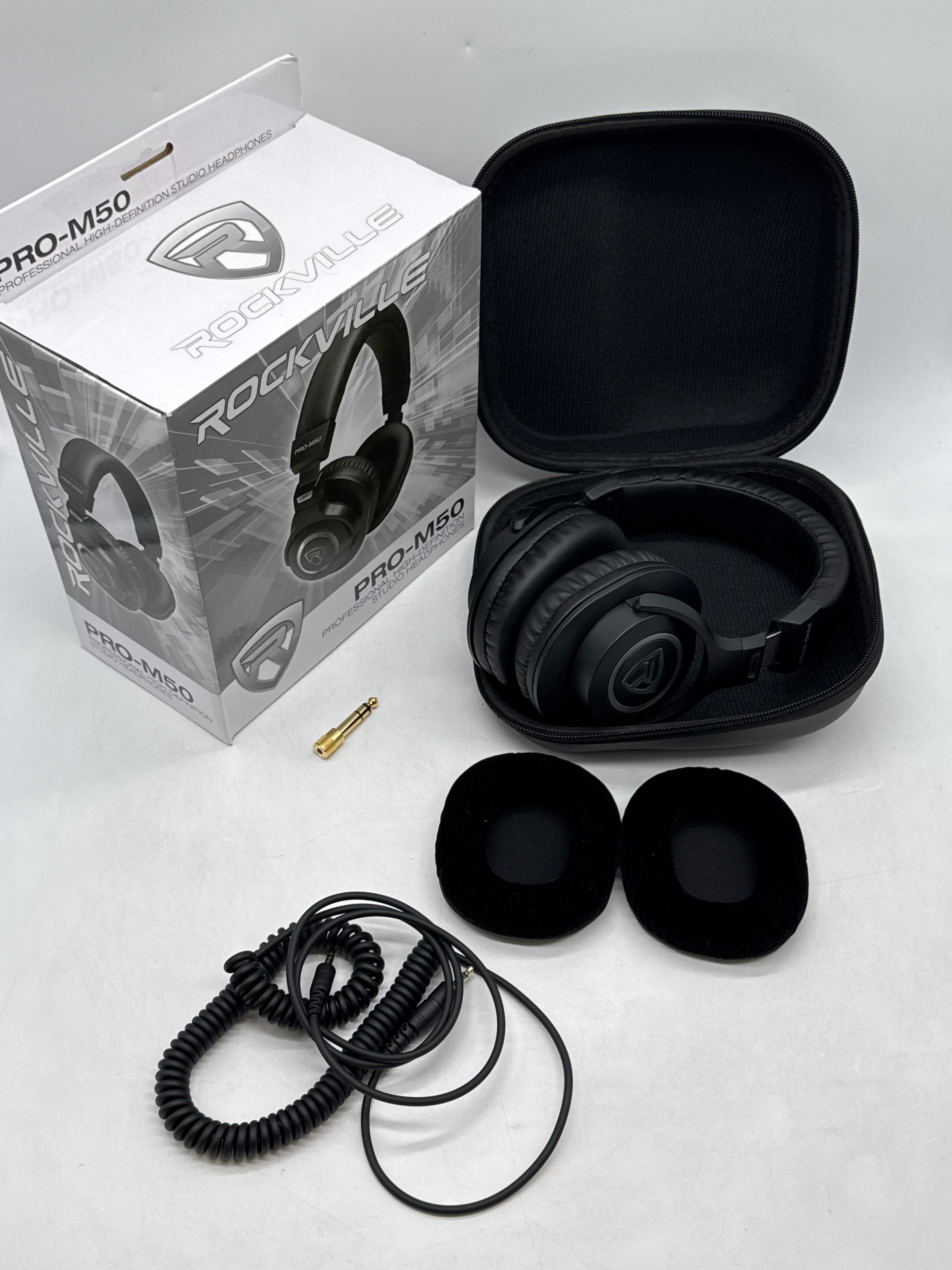 Rockville PRO-M50 Studio Headphones w/ Detachable Coil Cable, Case