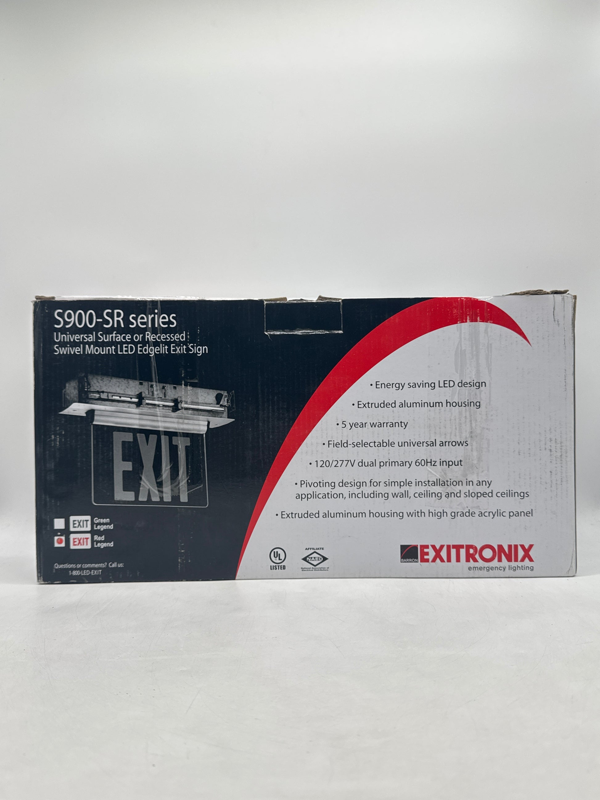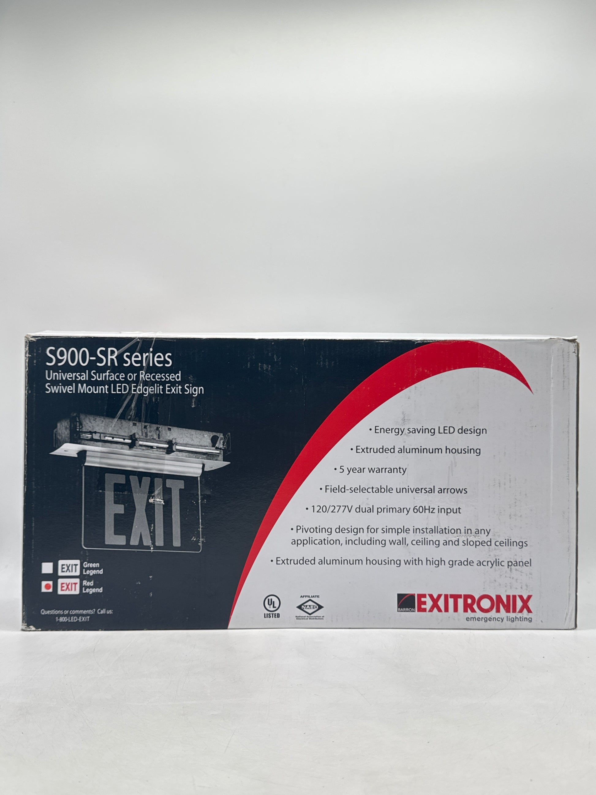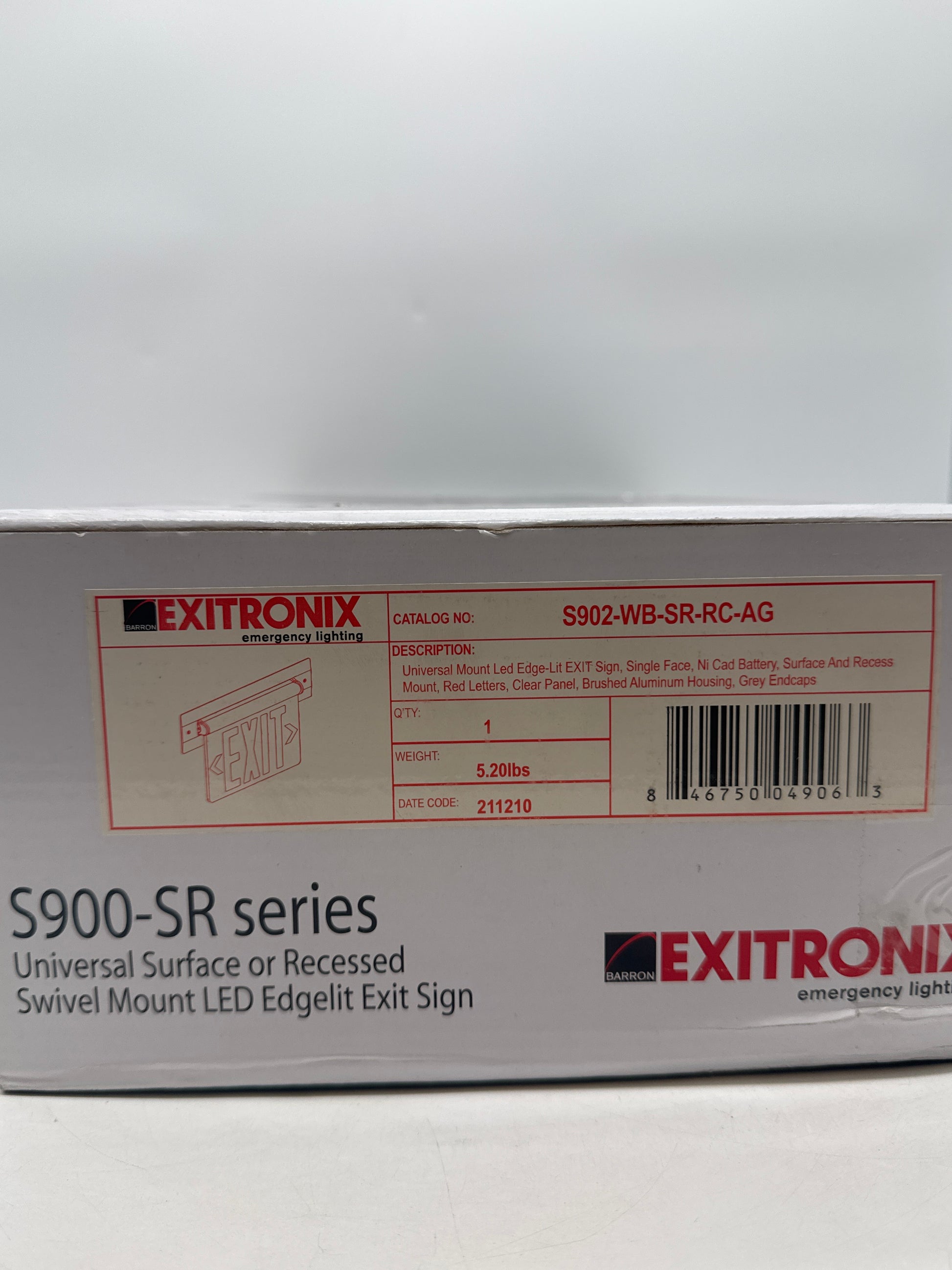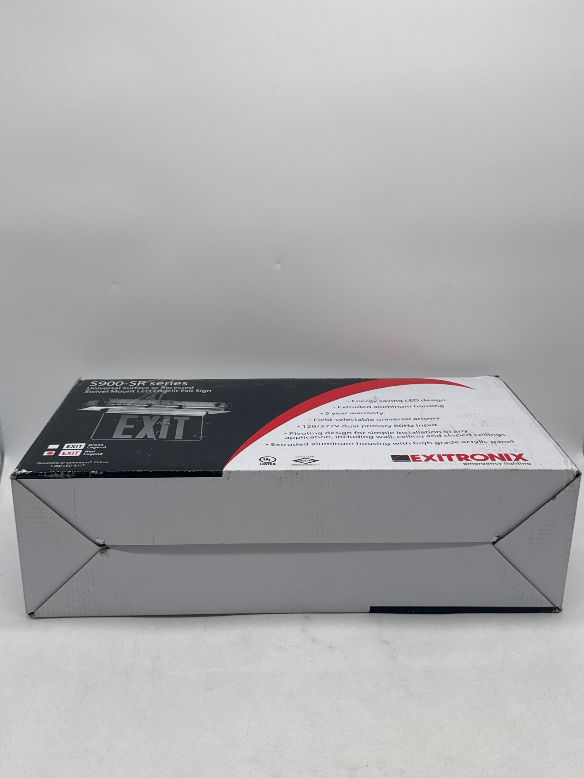 New Exitronix S902-WB-SR-RC-AG LED Exit Sign Universal Edge-Lit Red Letters