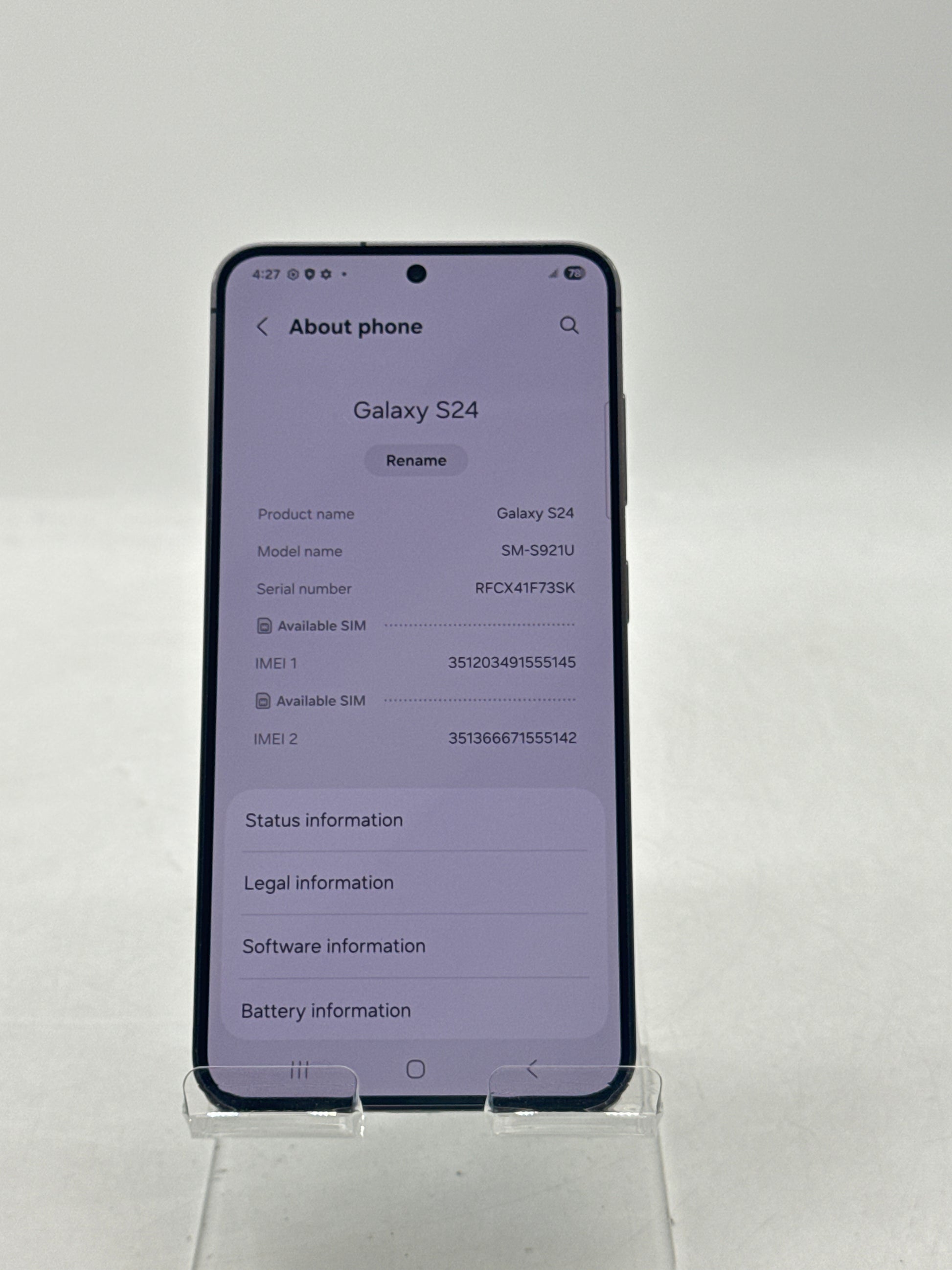 | Model | Samsung Galaxy S24 |