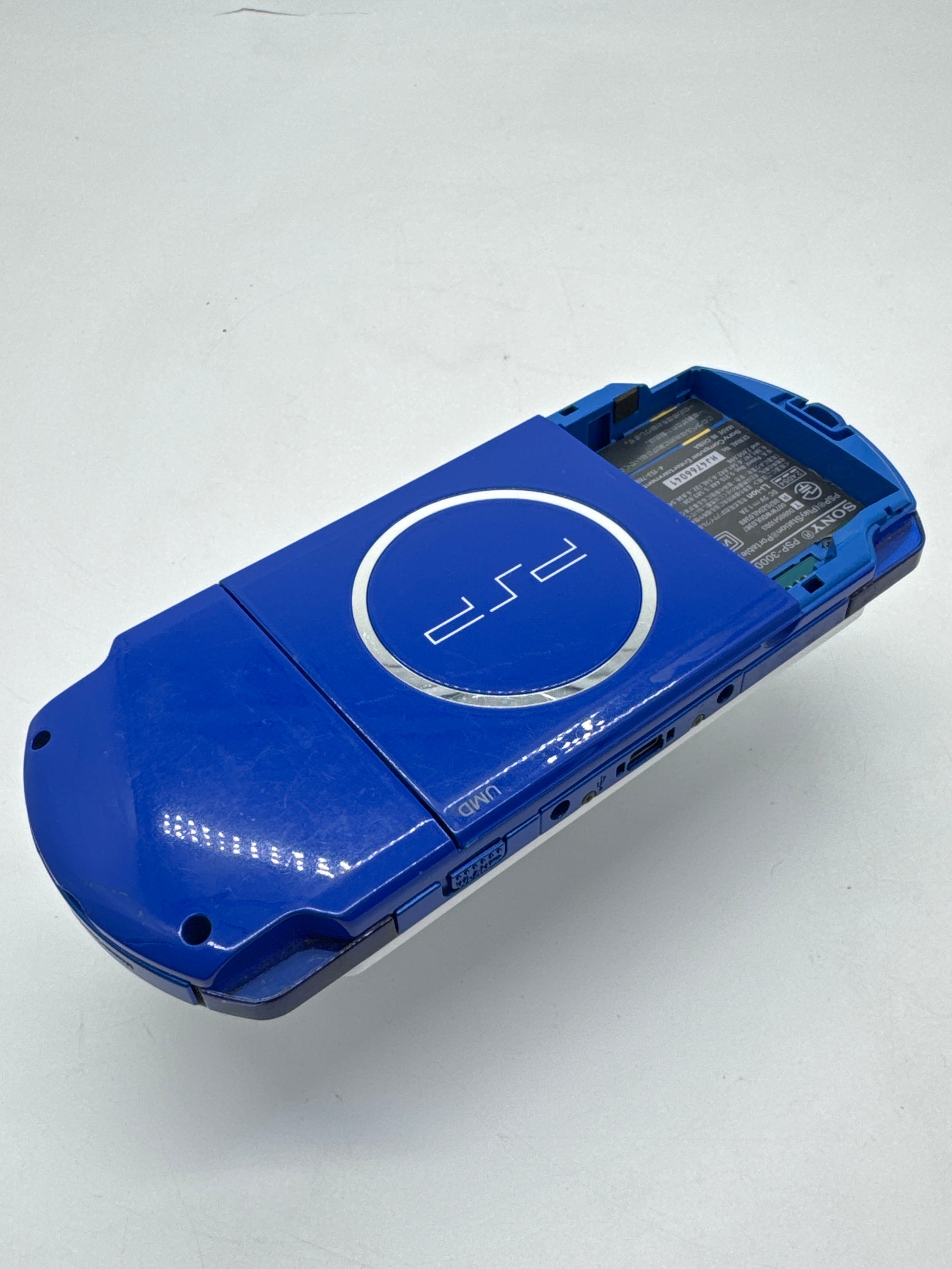 Sony PSP-3000 White Blue Console #237 No Battery No Lid BAD SCREEN AND UMD AS IS