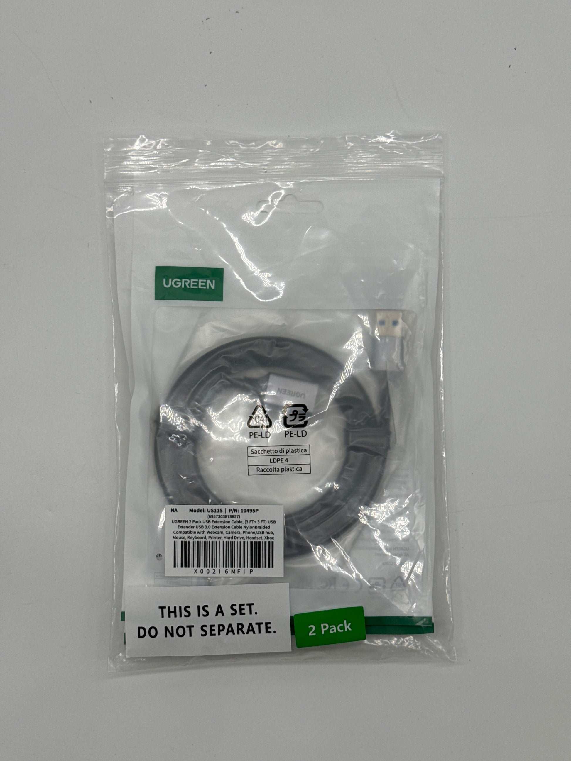 UGREEN 2 Pack USB Extension Cable (3 FT+ 3 FT), Nylon Braided Extender Compatible